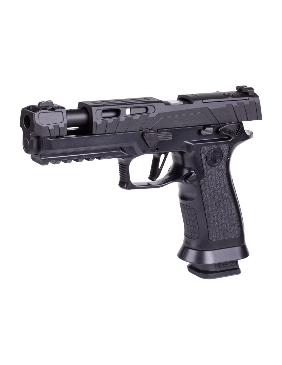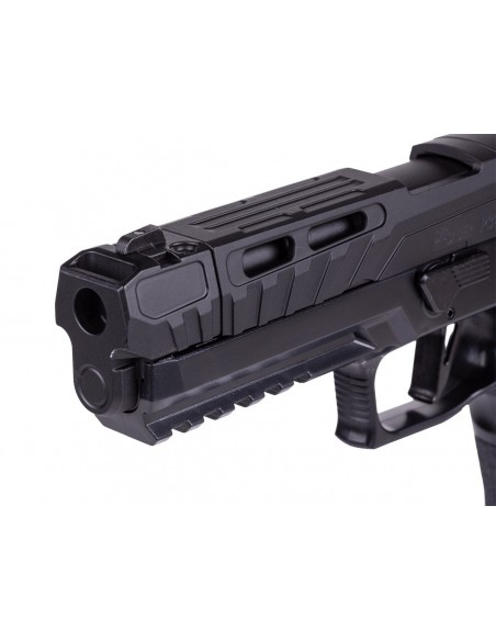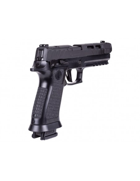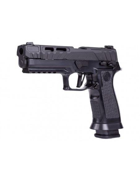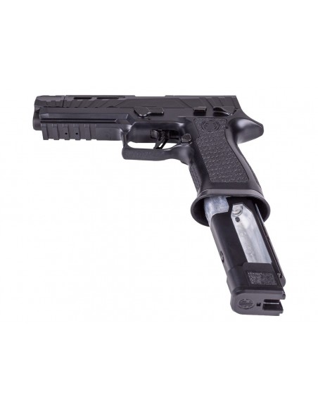 Lleva tu entrenamiento al siguiente nivel con la pistola de aire comprimido SIG Sauer P320 Spectre Comp Blackout. Diseñada para ofrecer una experiencia realista, cuenta con sistema de propulsión mediante cartucho de CO₂ integrado en el cargador, proporcionando un retroceso (blowback) auténtico y una ergonomía precisa.