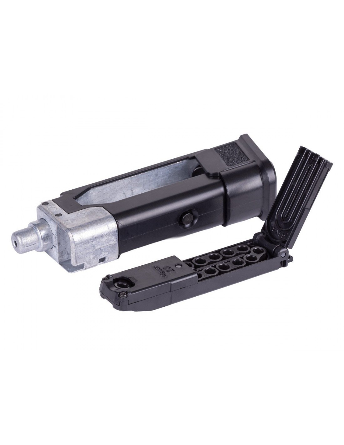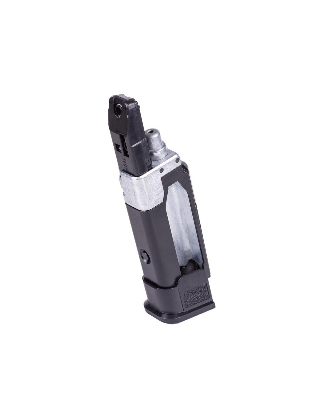 Su corredera metálica aporta un peso equilibrado que mejora la sensación de realismo en cada disparo. Dispara diábolos calibre .177 a través de un cañón estriado, alcanzando velocidades de hasta 540 FPS, y utiliza un cargador desmontable con capacidad para 20 disparos.